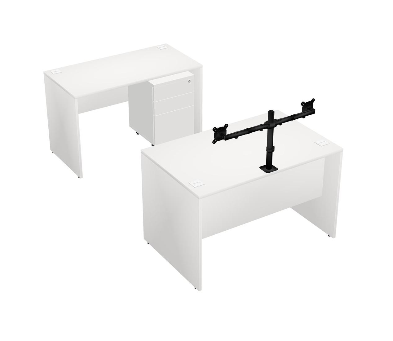 Office Parallel Desk Credenza Desk + Wooden Mobile Drawers + Monitor Arm (double Arms)