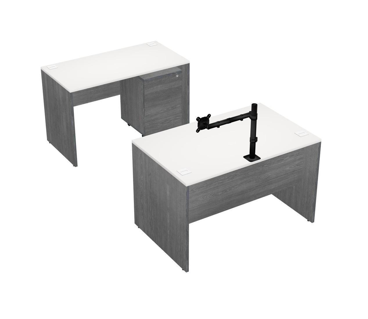 Office Parallel Desk Credenza Desk + Wooden Mobile Drawers + Monitor Arm (single Arm)