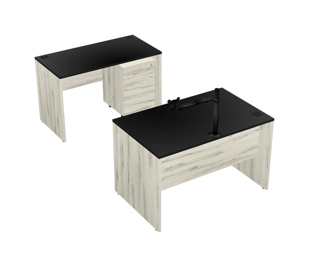 Office Parallel Desk Credenza Desk + Wooden Mobile Drawers + Monitor Arm (single Arm)
