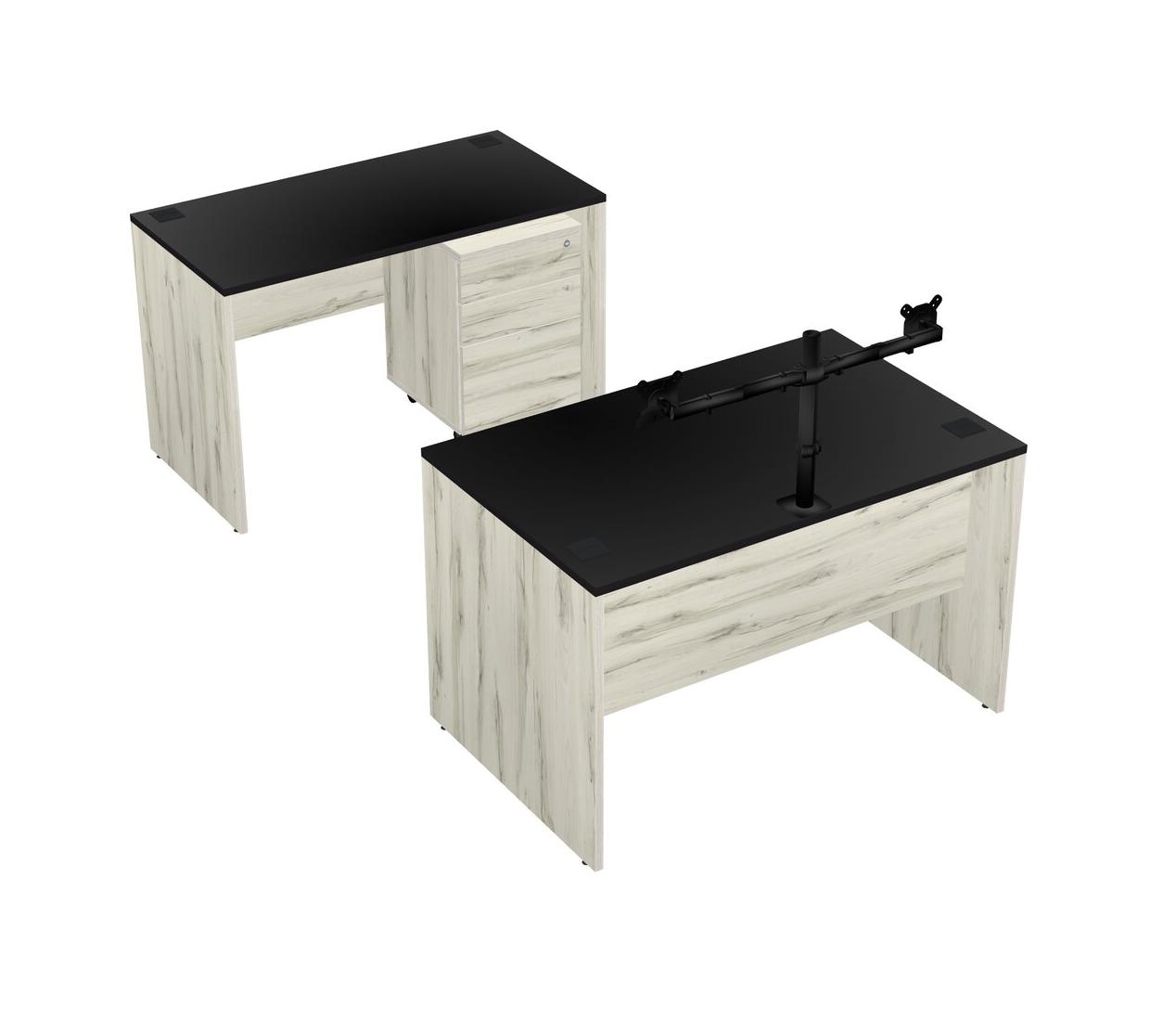 Office Parallel Desk Credenza Desk + Wooden Mobile Drawers + Monitor Arm (double Arms)