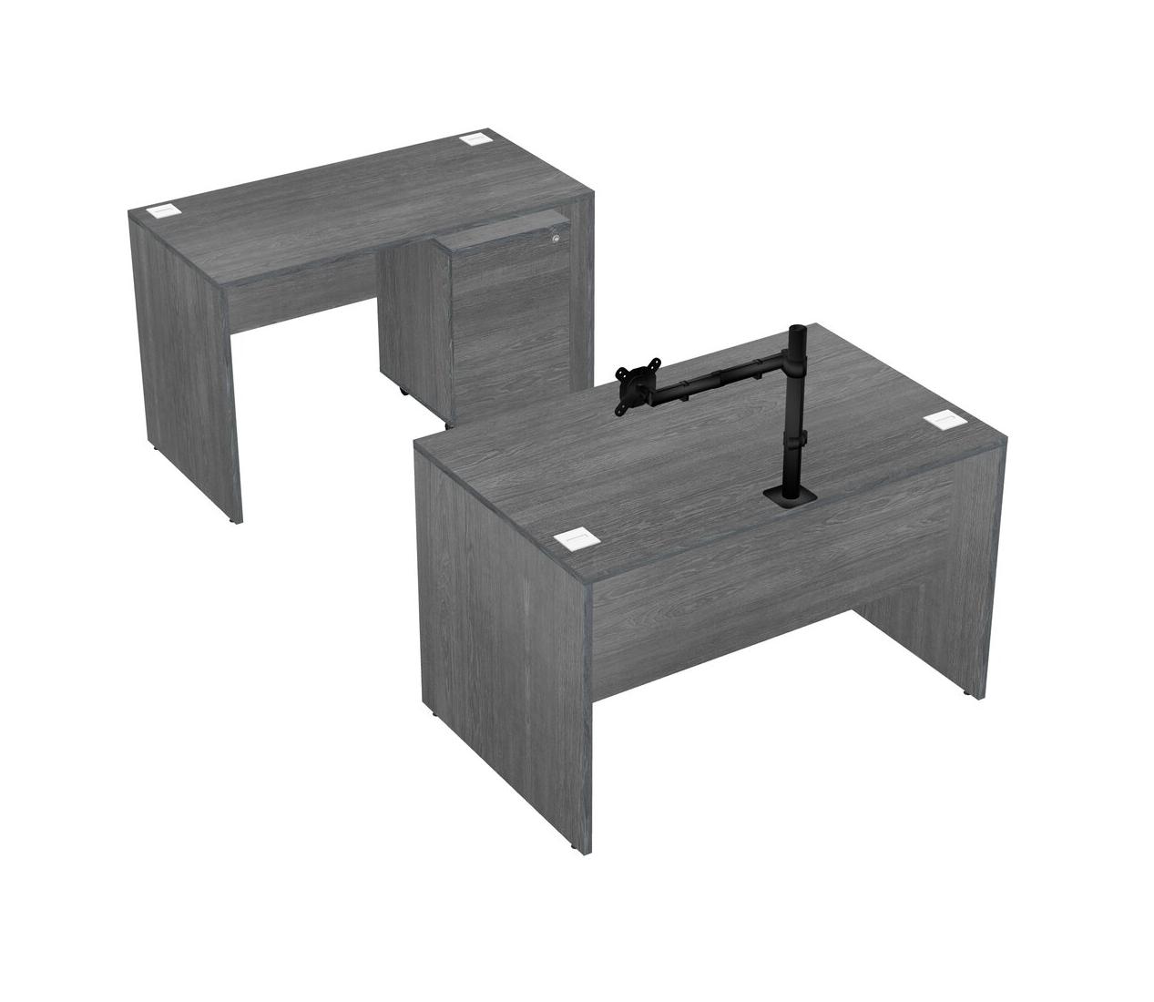 Office Parallel Desk Credenza Desk + Wooden Mobile Drawers + Monitor Arm (single Arm)