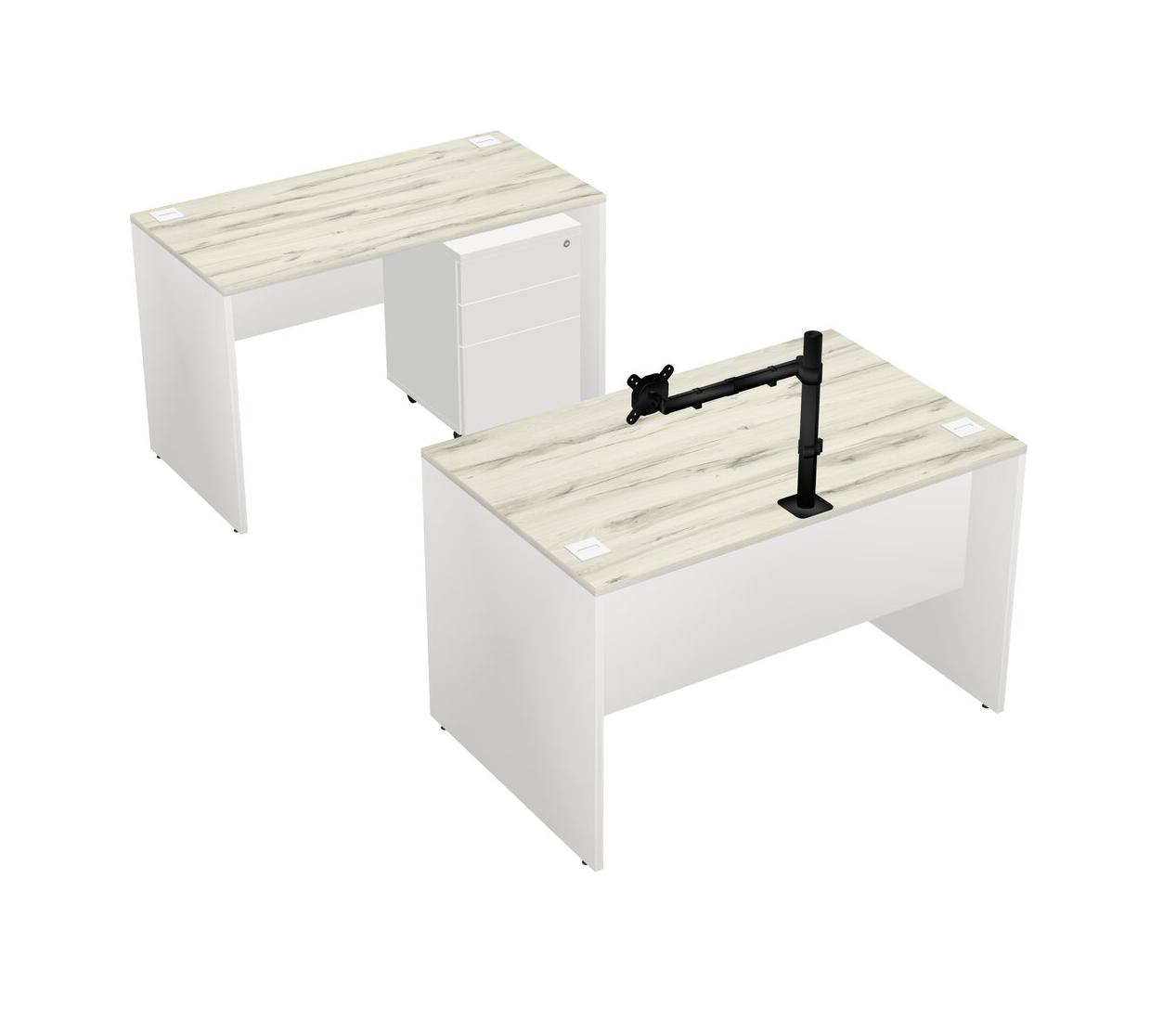 Office Parallel Desk Credenza Desk + Wooden Mobile Drawers + Monitor Arm (single Arm)