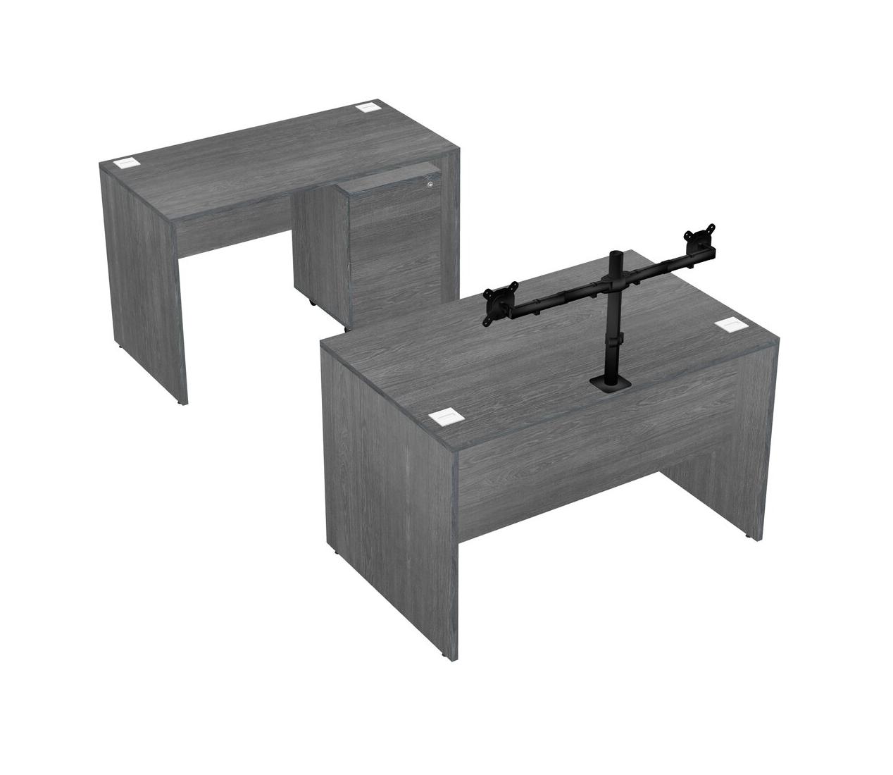 Office Parallel Desk Credenza Desk + Wooden Mobile Drawers + Monitor Arm (double Arms)