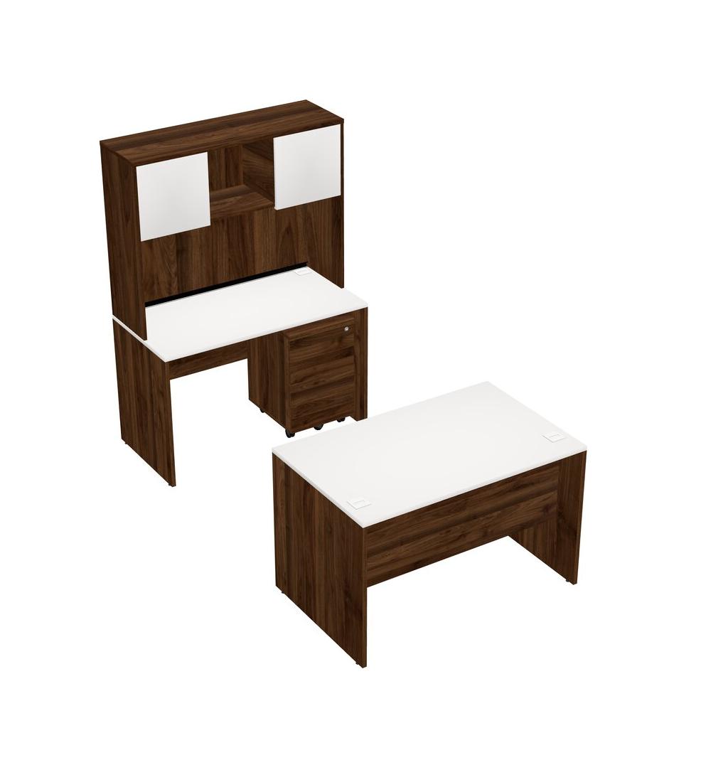 Office Parallel Desk Credenza Desk + Wooden Mobile Drawers + Hutch