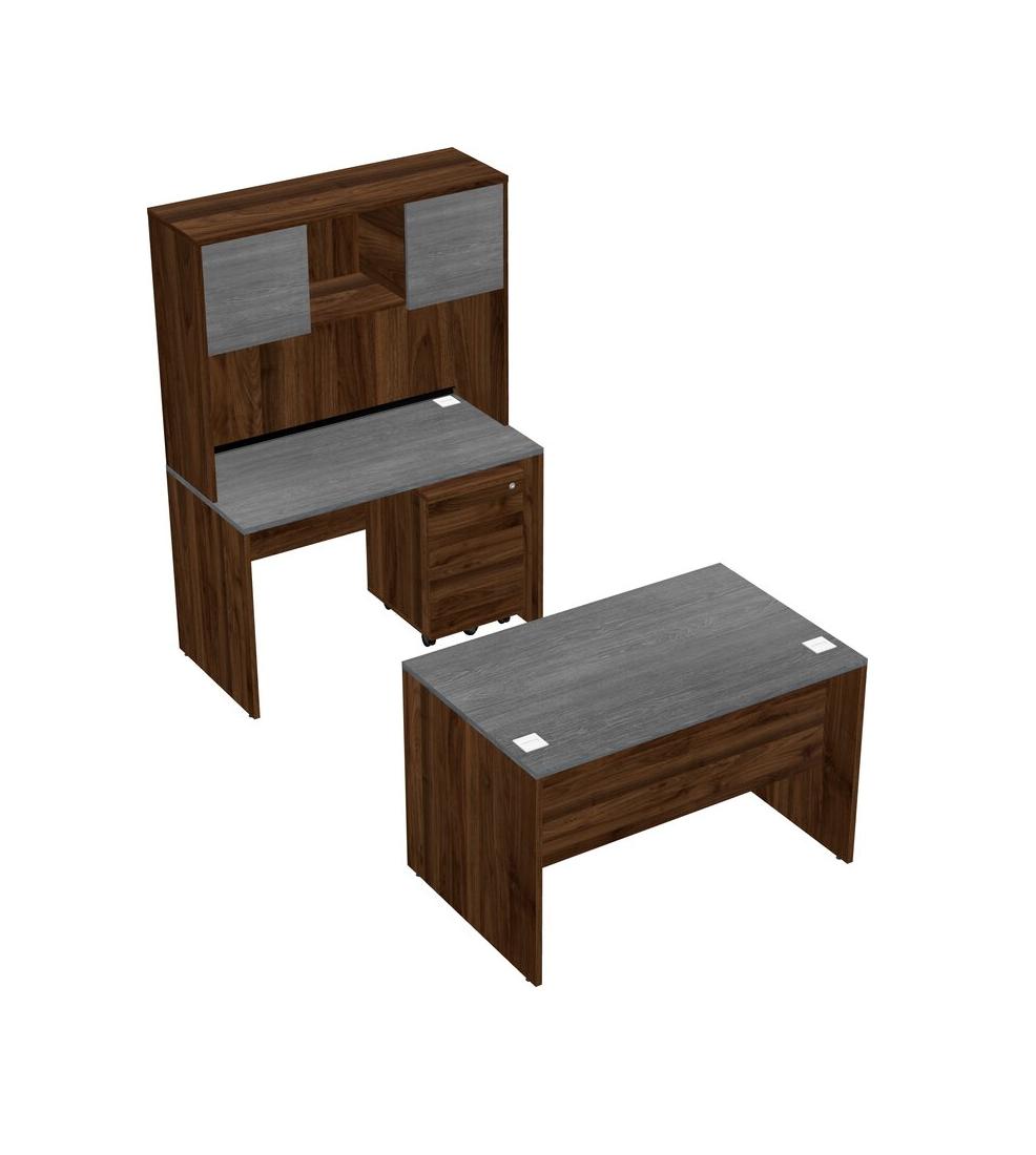 Office Parallel Desk Credenza Desk + Wooden Mobile Drawers + Hutch