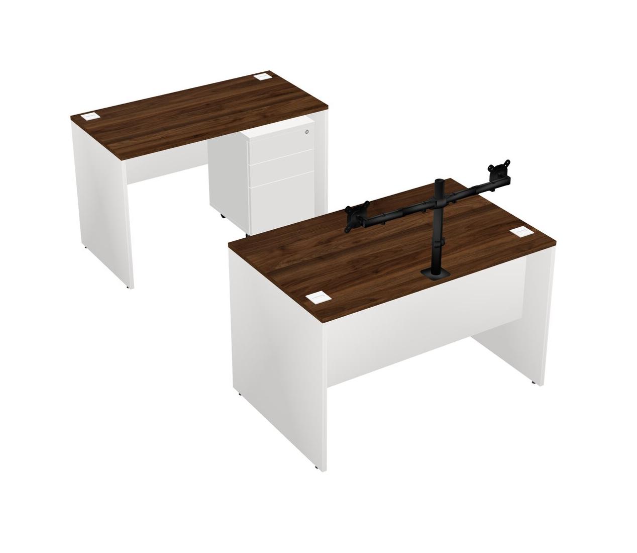 Office Parallel Desk Credenza Desk + Wooden Mobile Drawers + Monitor Arm (double Arms)
