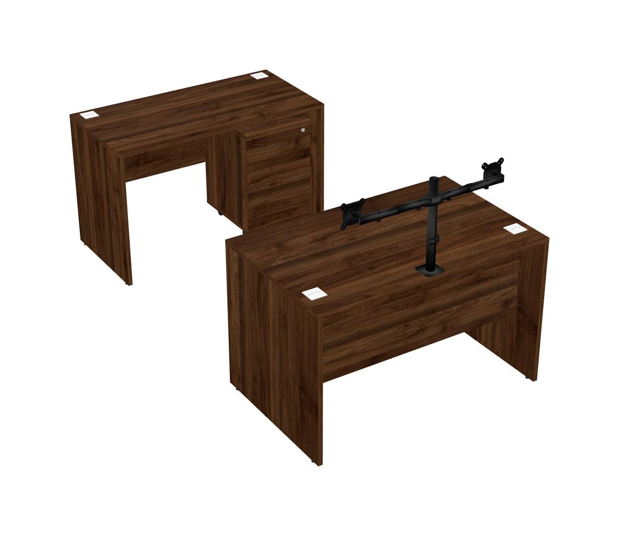 Office Parallel Desk Credenza Desk + Wooden Mobile Drawers + Monitor Arm (double Arms)