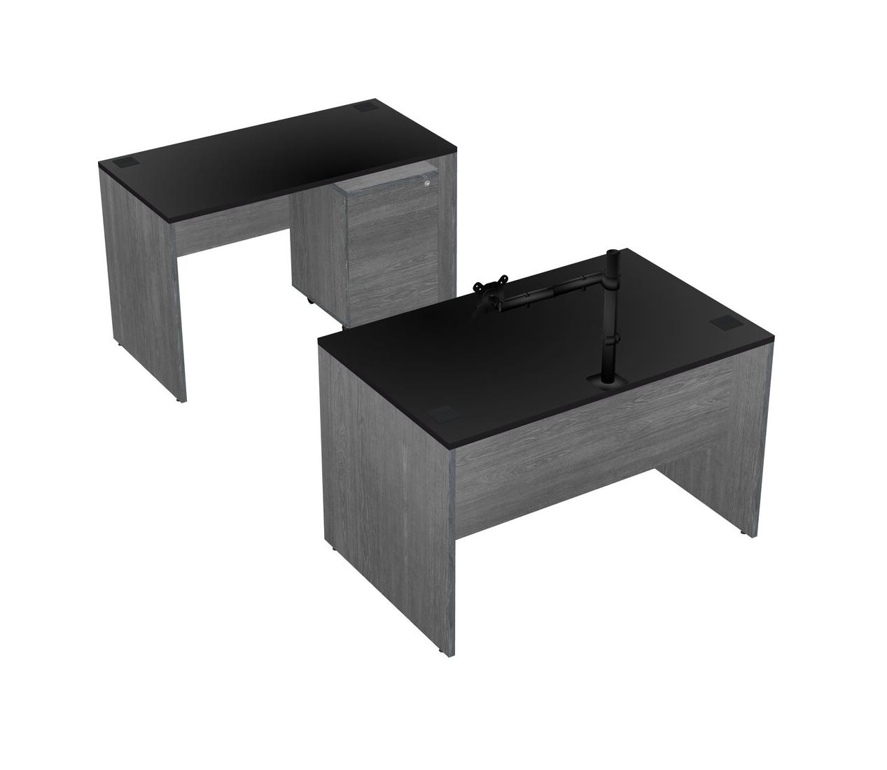 Office Parallel Desk Credenza Desk + Wooden Mobile Drawers + Monitor Arm (single Arm)