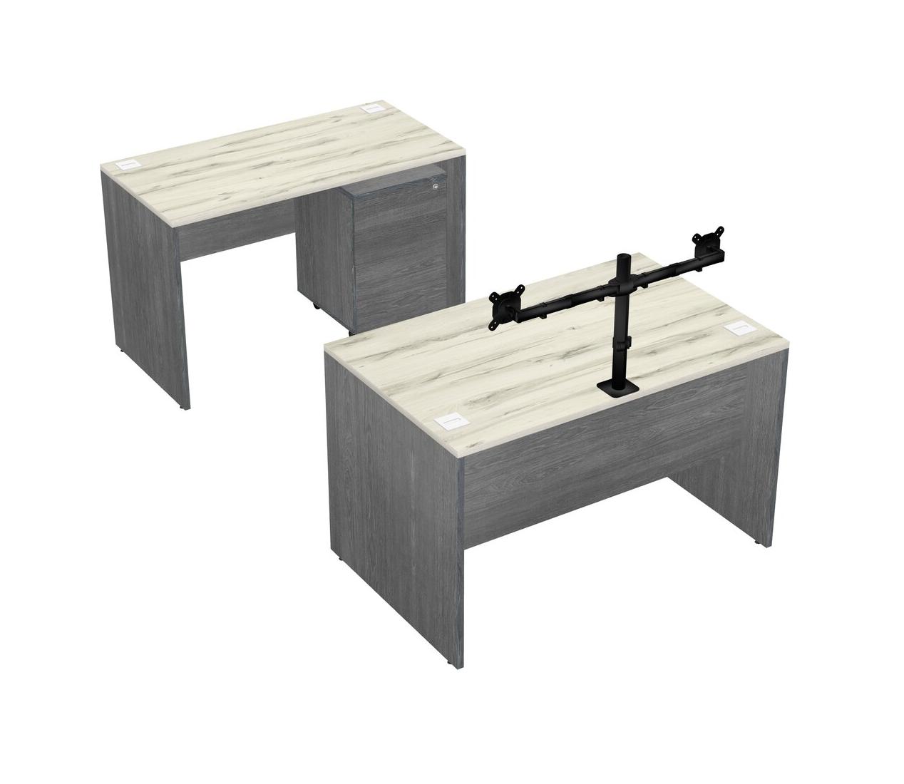 Office Parallel Desk Credenza Desk + Wooden Mobile Drawers + Monitor Arm (double Arms)