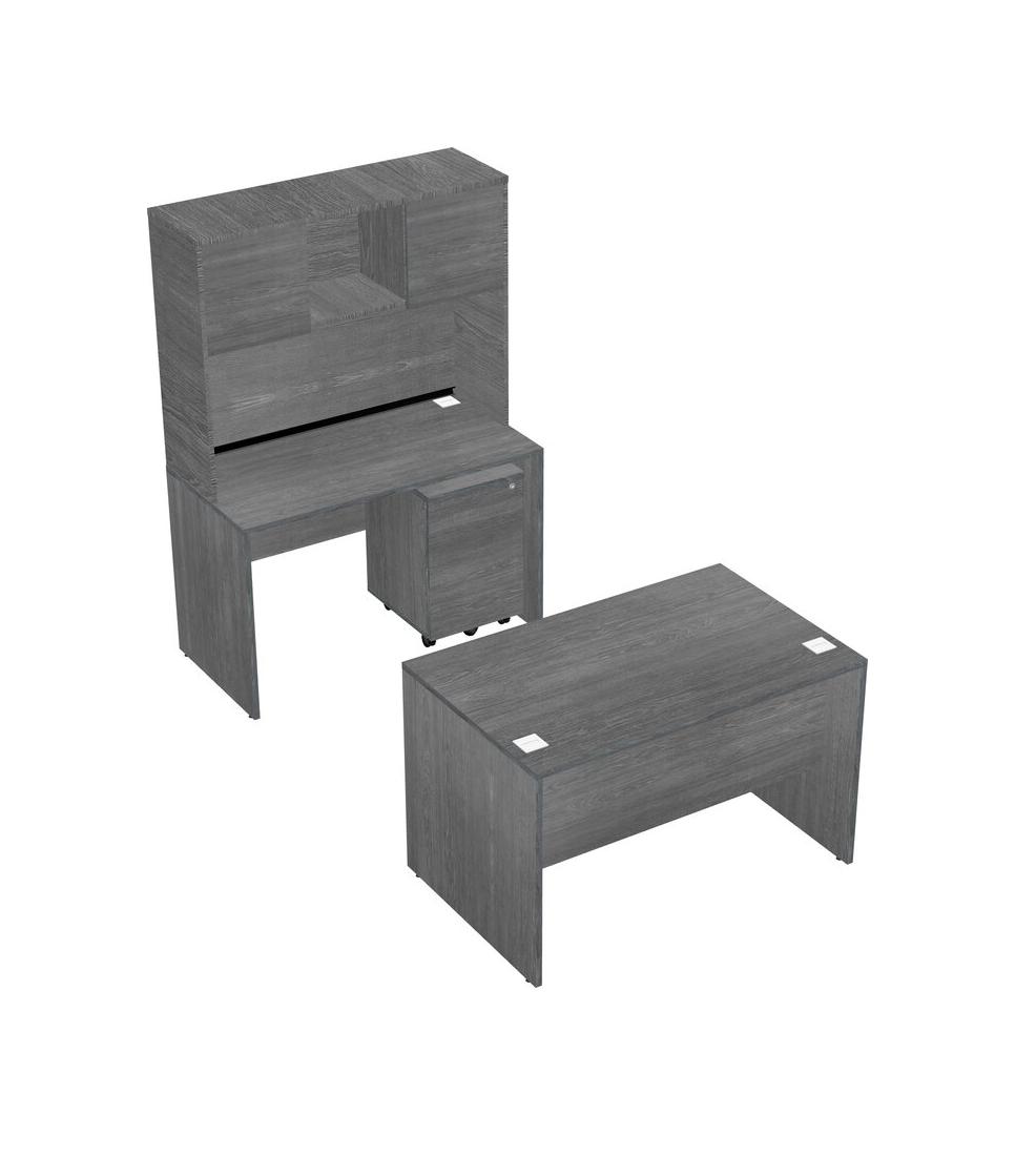 Office Parallel Desk Credenza Desk + Wooden Mobile Drawers + Hutch