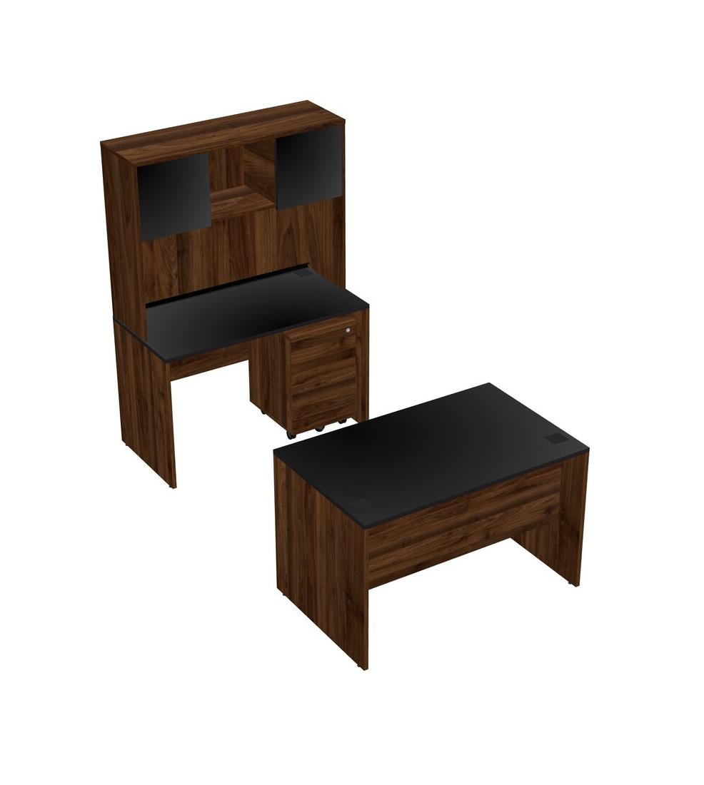 Office Parallel Desk Credenza Desk + Wooden Mobile Drawers + Hutch
