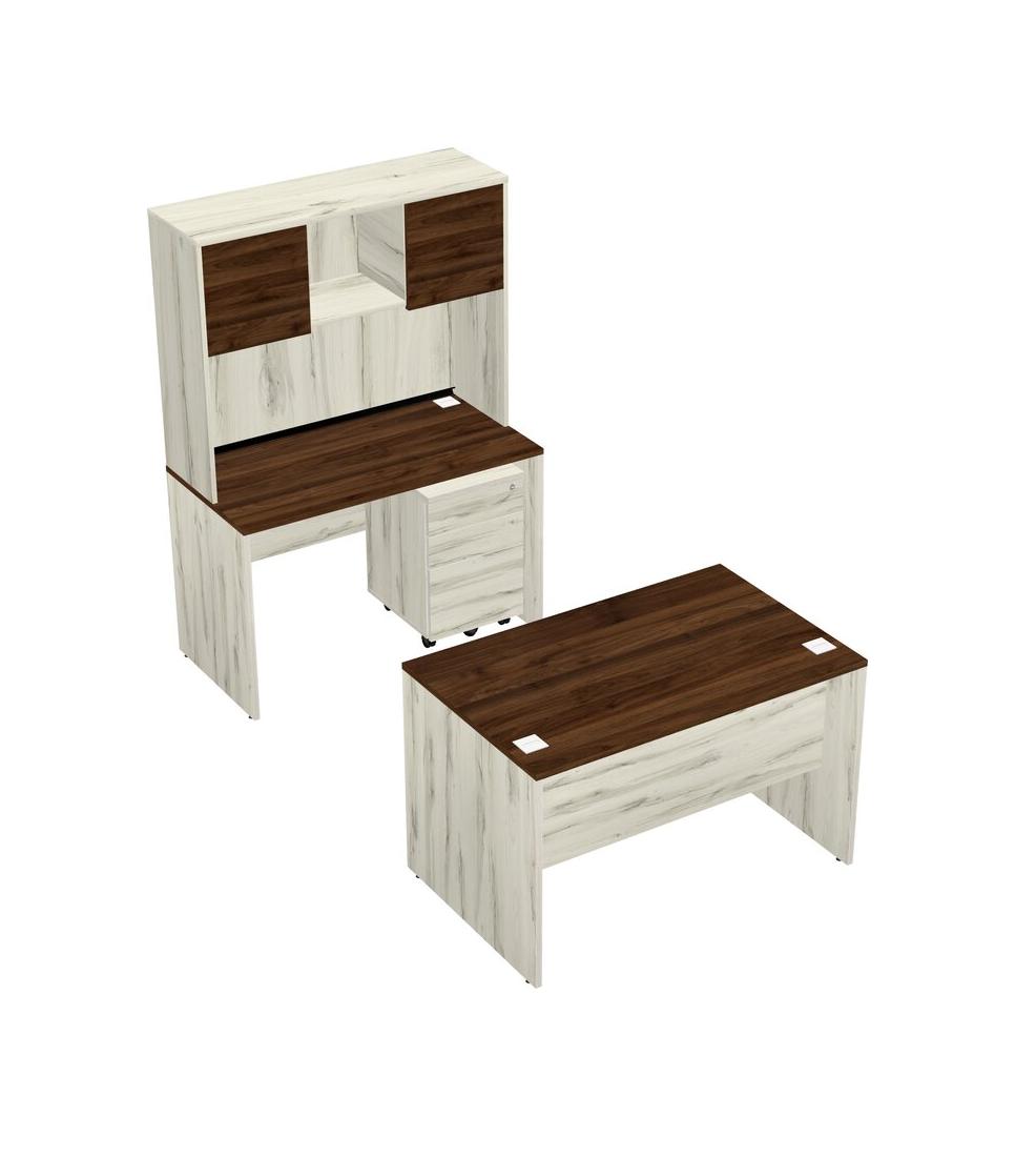 Office Parallel Desk Credenza Desk + Wooden Mobile Drawers + Hutch