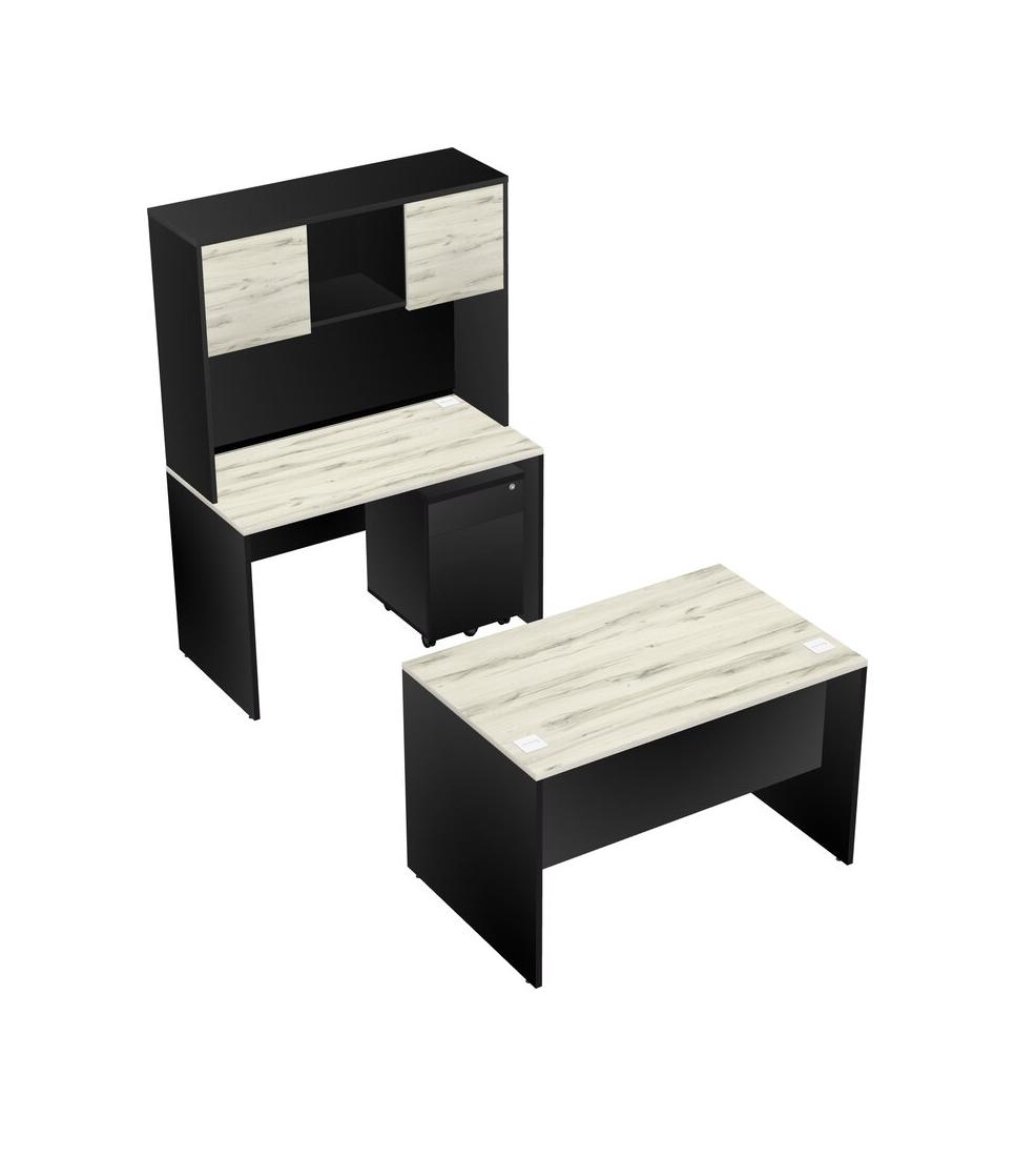 Office Parallel Desk Credenza Desk + Wooden Mobile Drawers + Hutch