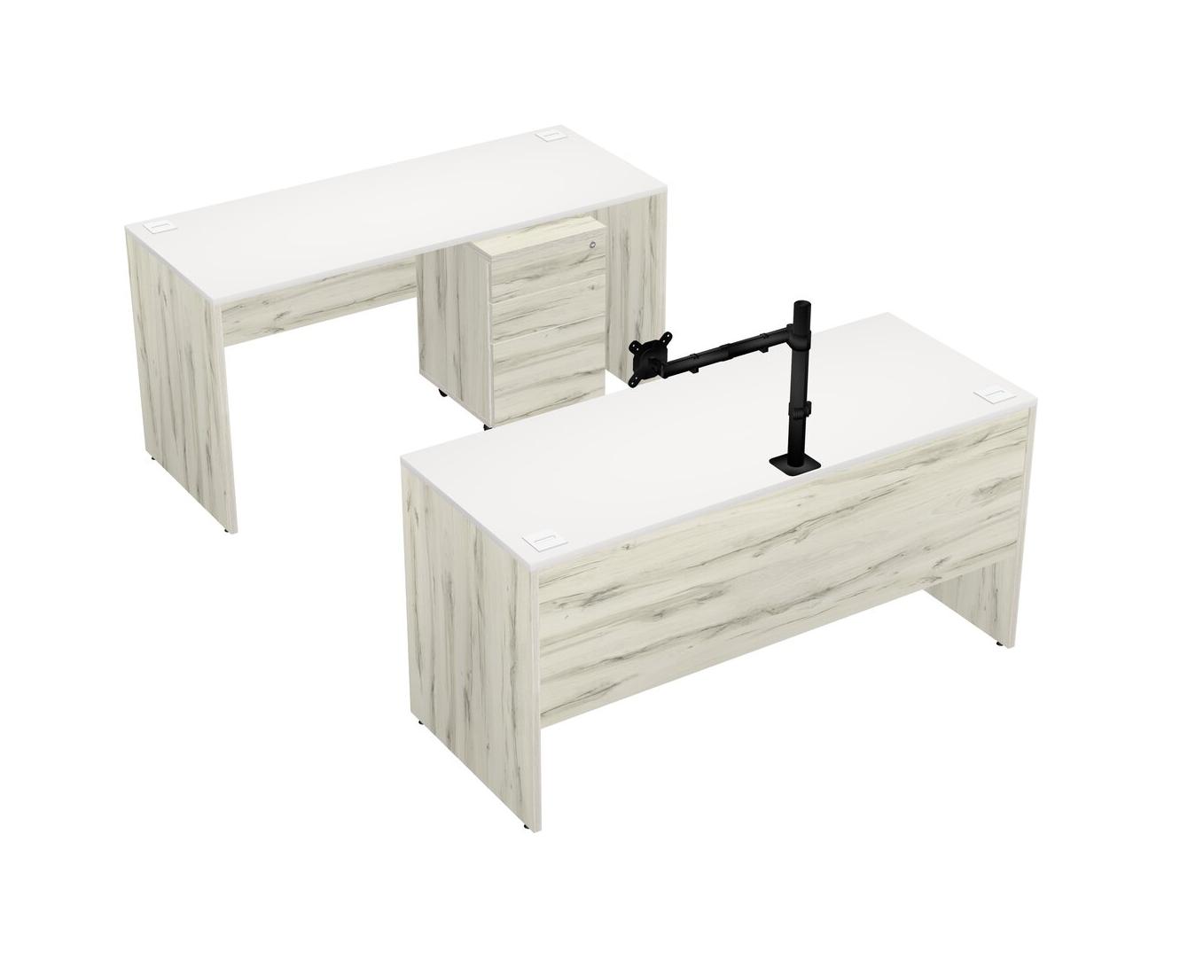 Office Parallel Desk Credenza Desk + Wooden Mobile Drawers + Monitor Arm (single Arm)