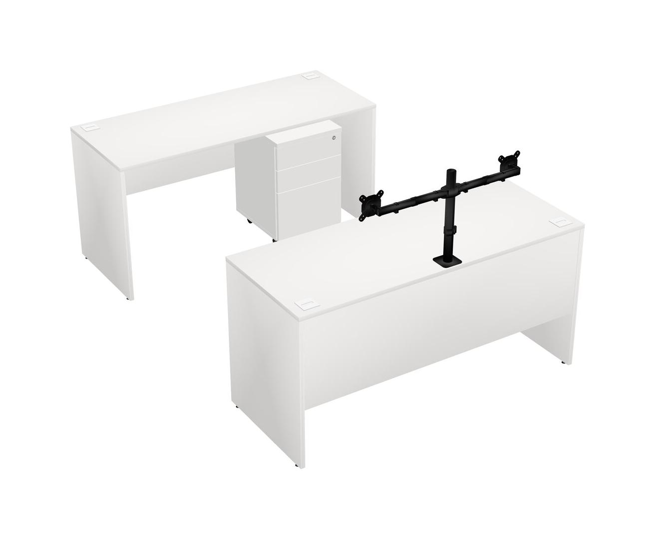Office Parallel Desk Credenza Desk + Wooden Mobile Drawers + Monitor Arm (double Arms)