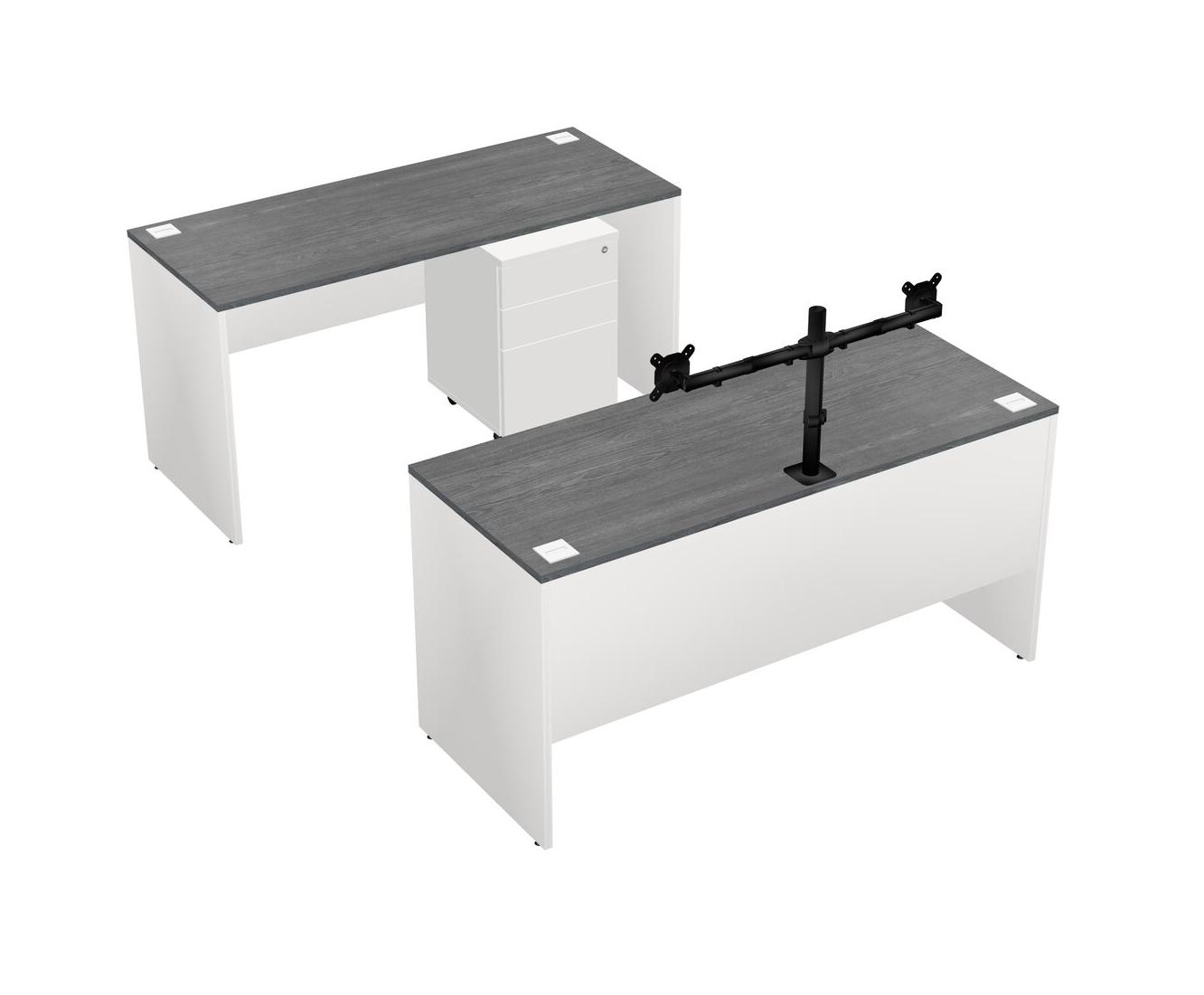 Office Parallel Desk Credenza Desk + Wooden Mobile Drawers + Monitor Arm (double Arms)