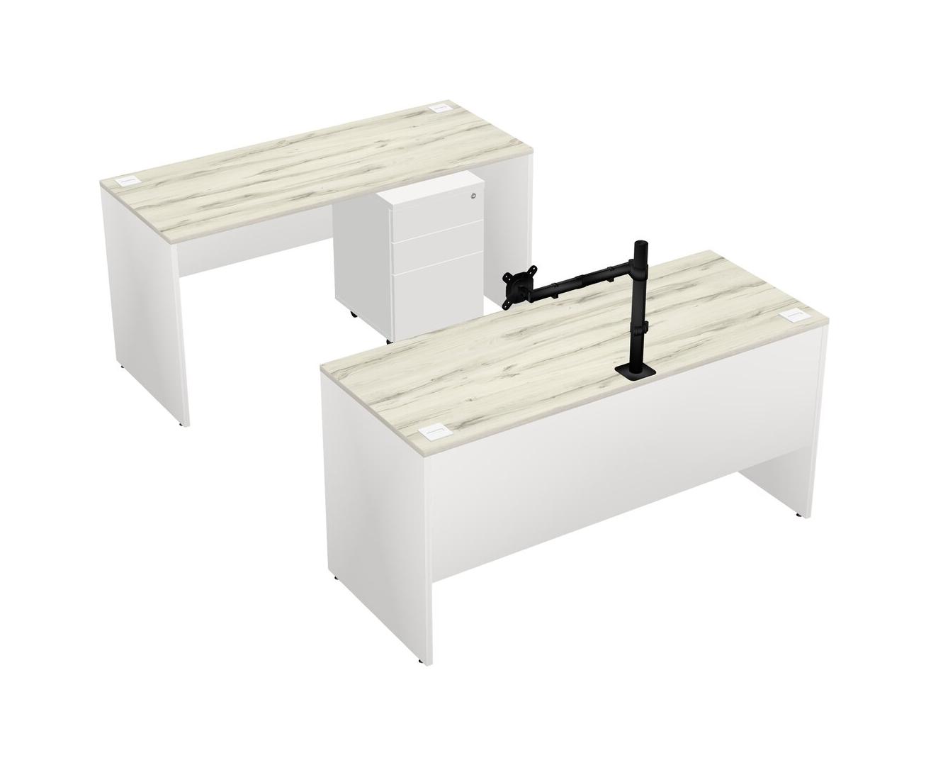 Office Parallel Desk Credenza Desk + Wooden Mobile Drawers + Monitor Arm (single Arm)