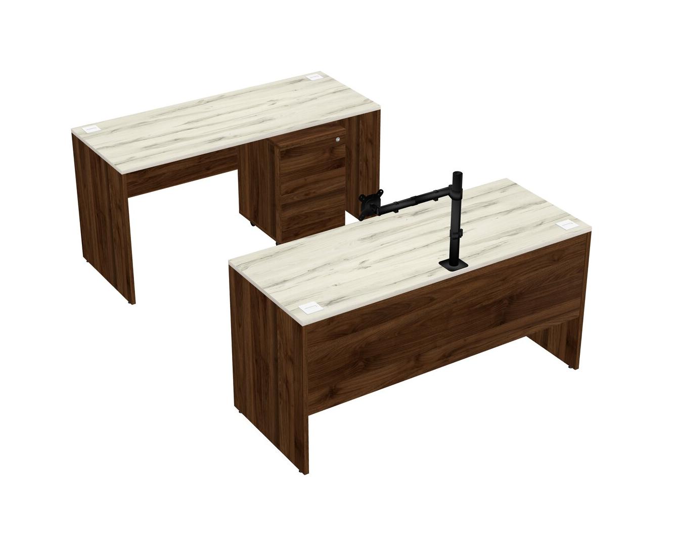 Office Parallel Desk Credenza Desk + Wooden Mobile Drawers + Monitor Arm (single Arm)