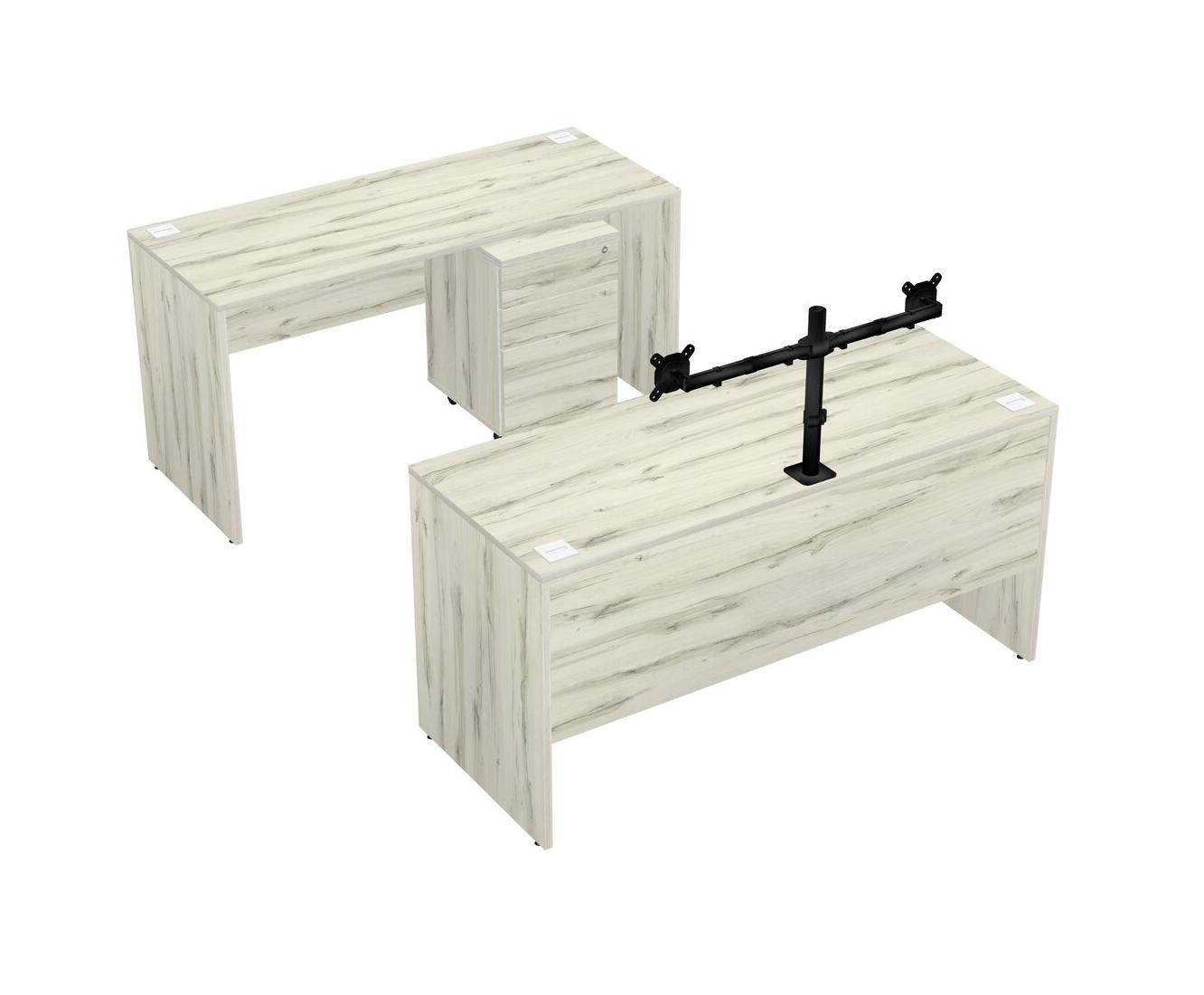 Office Parallel Desk Credenza Desk + Wooden Mobile Drawers + Monitor Arm (double Arms)