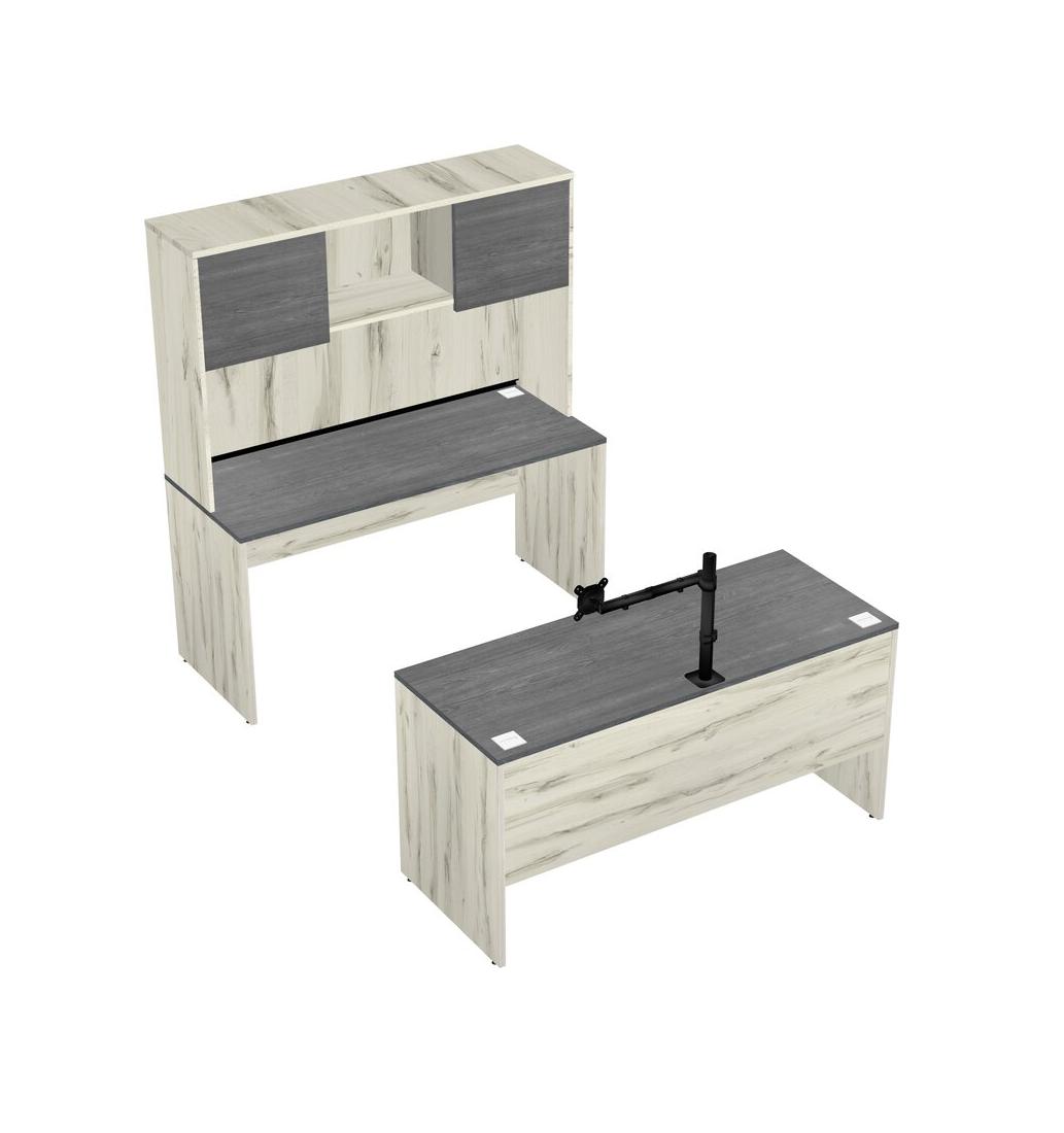 Office Parallel Desk Credenza Desk + Hutch + Monitor Arm (single Arm)