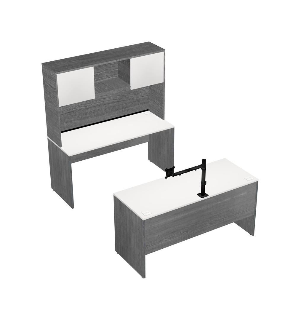 Office Parallel Desk Credenza Desk + Hutch + Monitor Arm (single Arm)