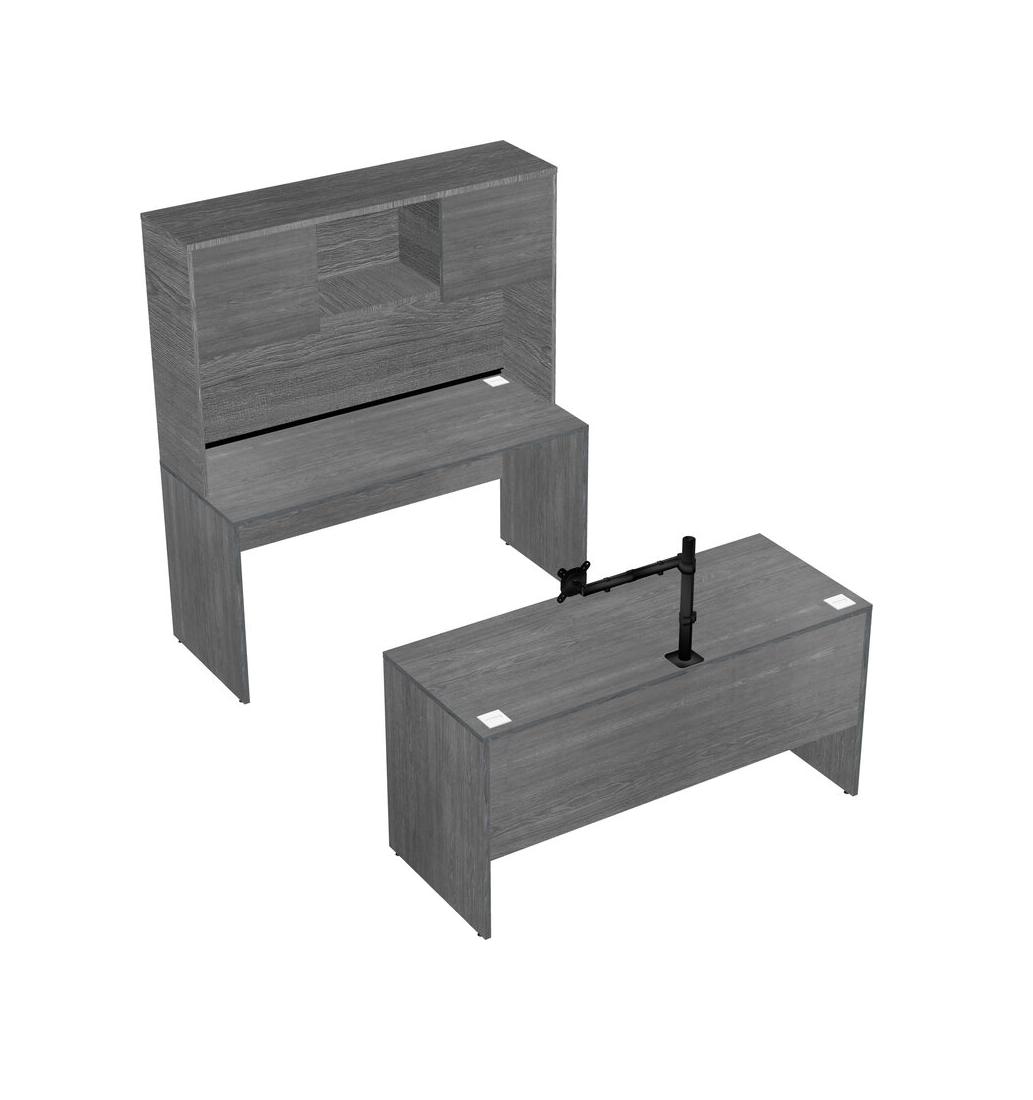 Office Parallel Desk Credenza Desk + Hutch + Monitor Arm (single Arm)