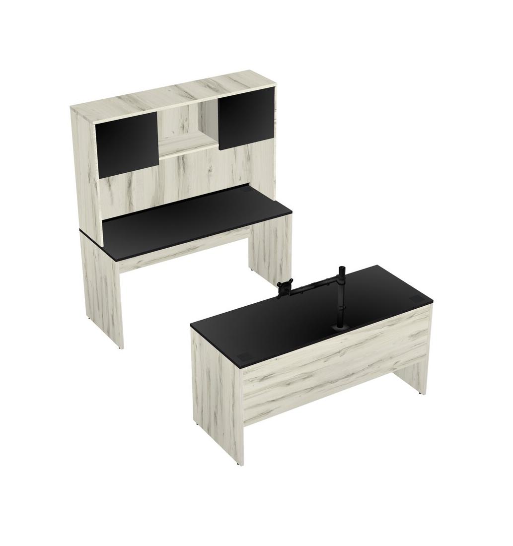 Office Parallel Desk Credenza Desk + Hutch + Monitor Arm (single Arm)