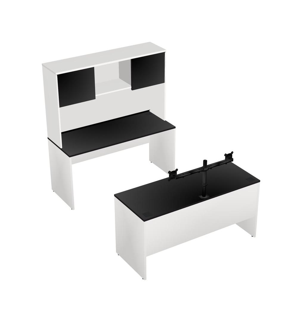 Office Parallel Desk Credenza Desk + Hutch + Monitor Arm (double Arms)