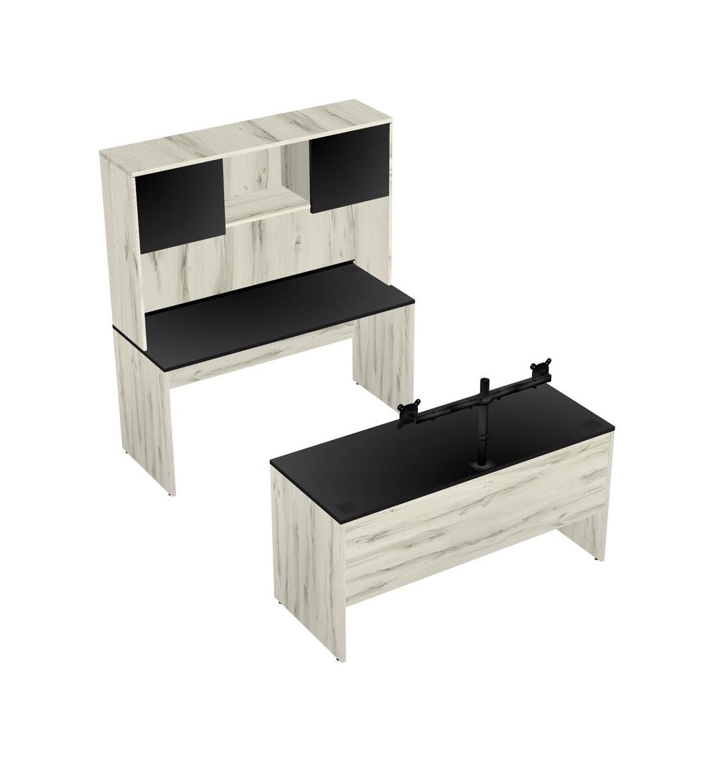 Office Parallel Desk Credenza Desk + Hutch + Monitor Arm (double Arms)