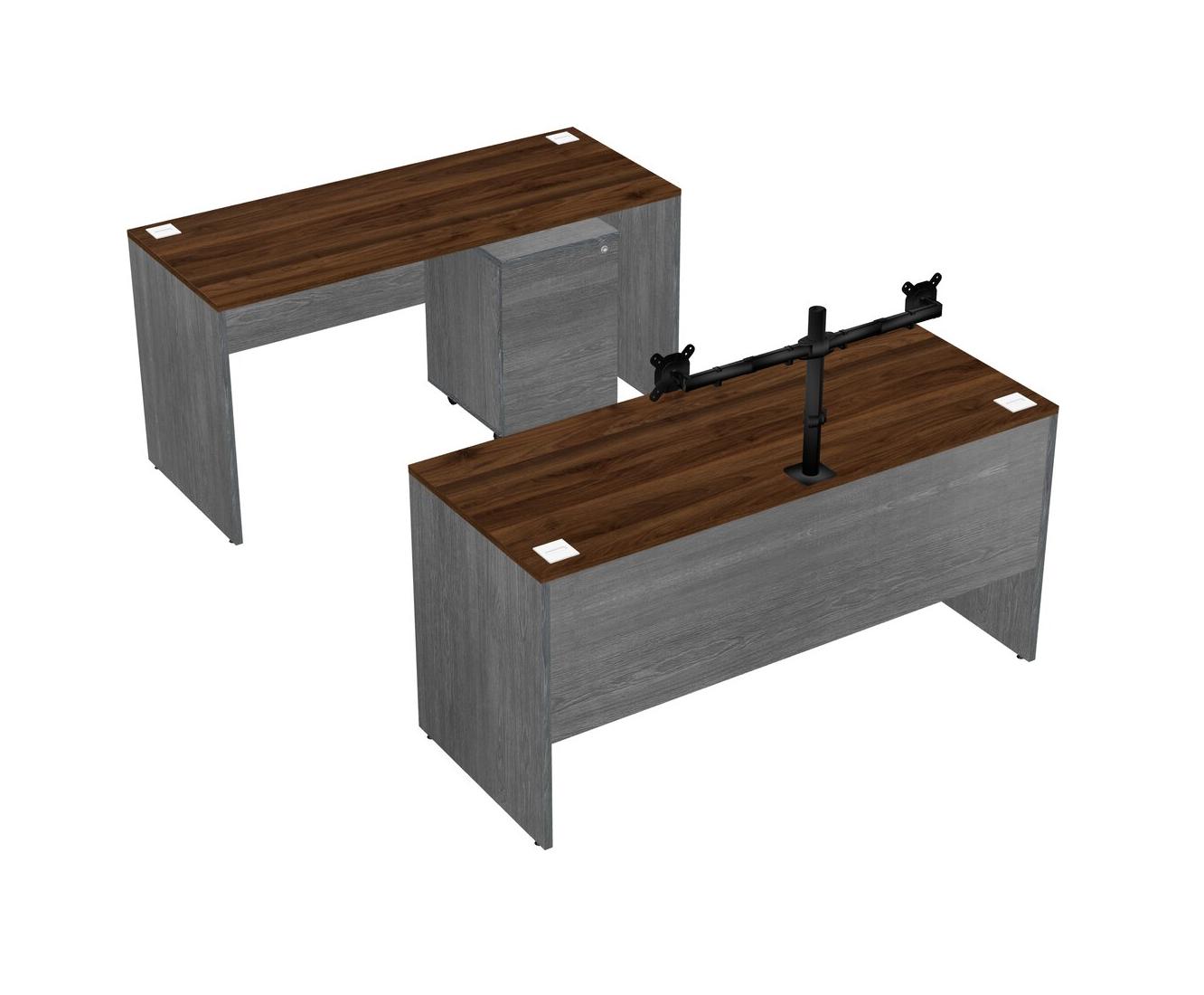 Office Parallel Desk Credenza Desk + Wooden Mobile Drawers + Monitor Arm (double Arms)
