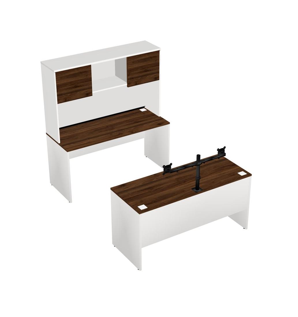 Office Parallel Desk Credenza Desk + Hutch + Monitor Arm (double Arms)