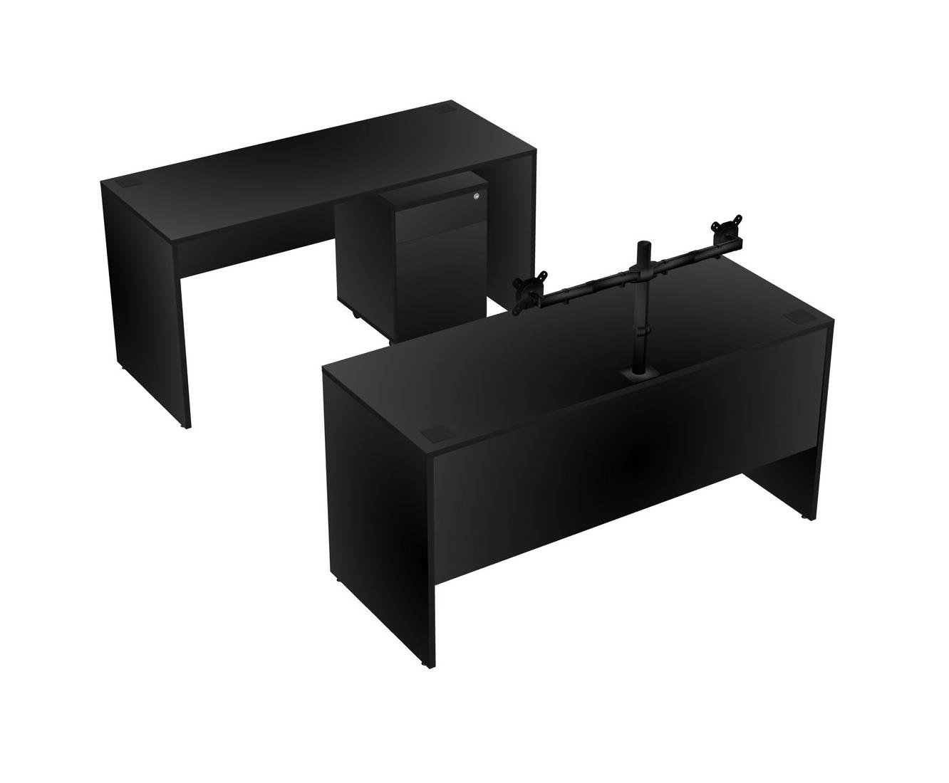 Office Parallel Desk Credenza Desk + Wooden Mobile Drawers + Monitor Arm (double Arms)