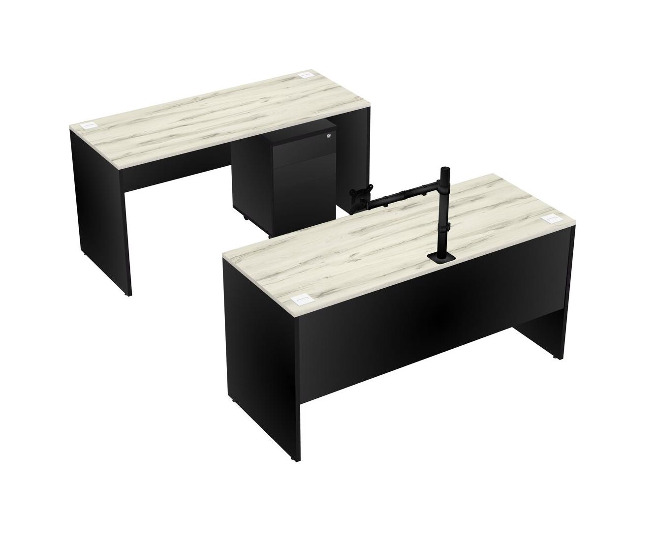Office Parallel Desk Credenza Desk + Wooden Mobile Drawers + Monitor Arm (single Arm)