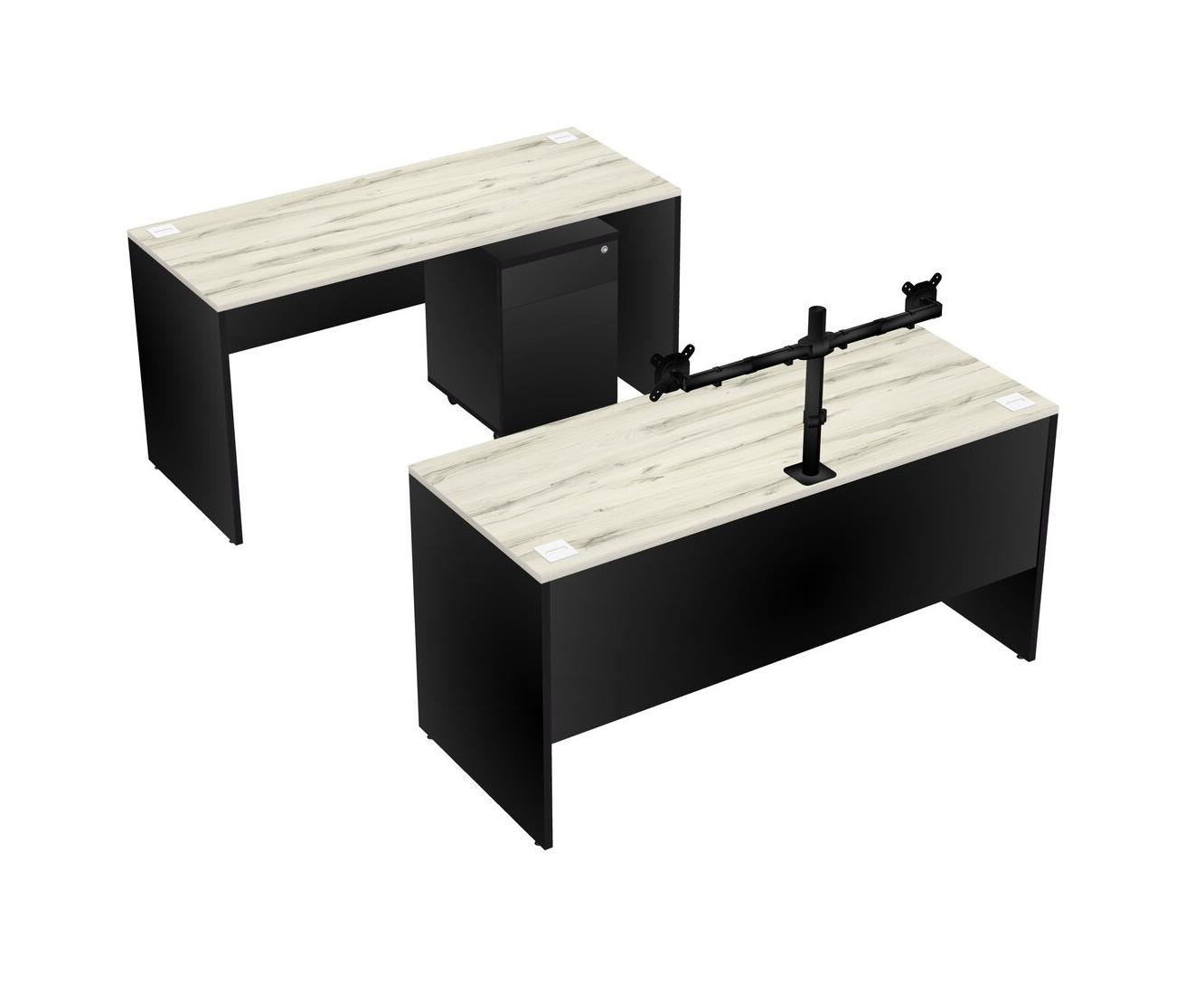 Office Parallel Desk Credenza Desk + Wooden Mobile Drawers + Monitor Arm (double Arms)