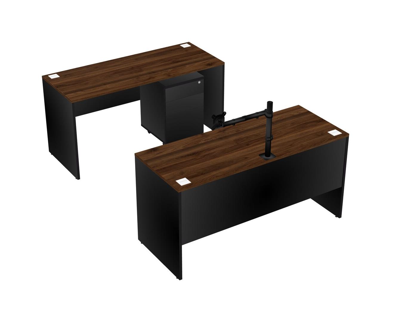 Office Parallel Desk Credenza Desk + Wooden Mobile Drawers + Monitor Arm (single Arm)