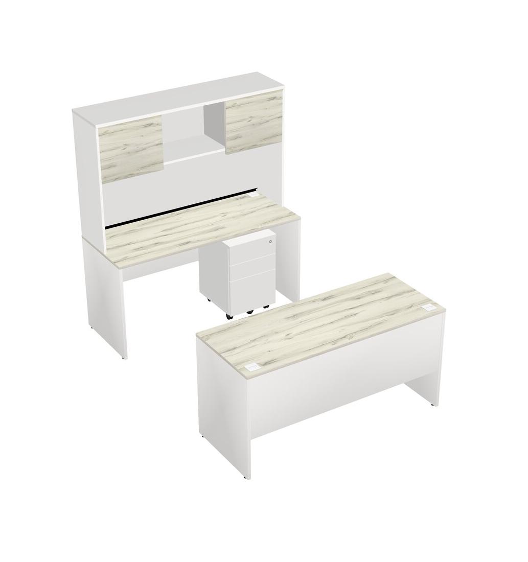 Office Parallel Desk Credenza Desk + Wooden Mobile Drawers + Hutch