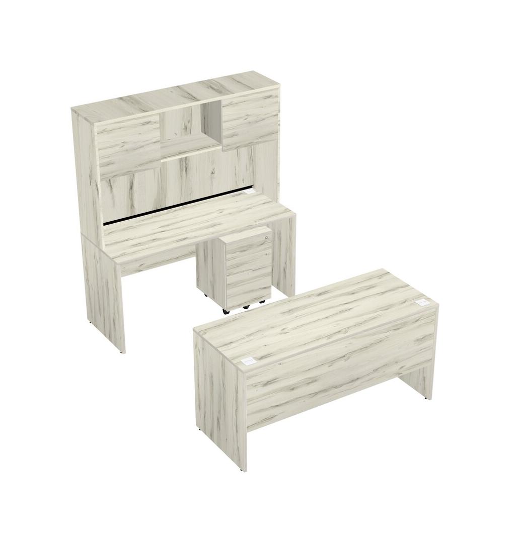 Office Parallel Desk Credenza Desk + Wooden Mobile Drawers + Hutch