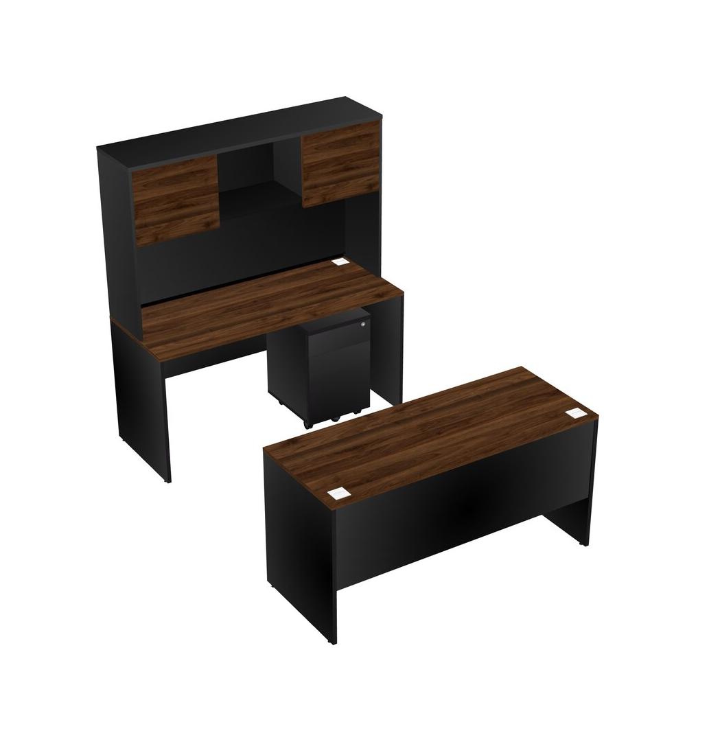 Office Parallel Desk Credenza Desk + Wooden Mobile Drawers + Hutch