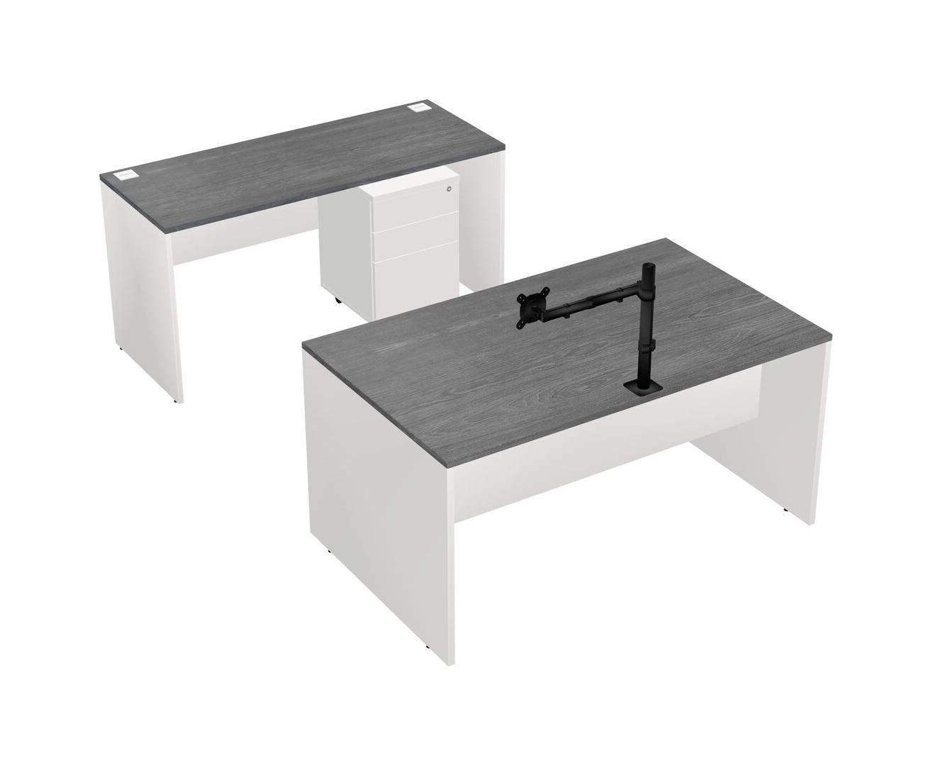 Office Parallel Desk Credenza Desk + Wooden Mobile Drawers + Monitor Arm (single Arm)