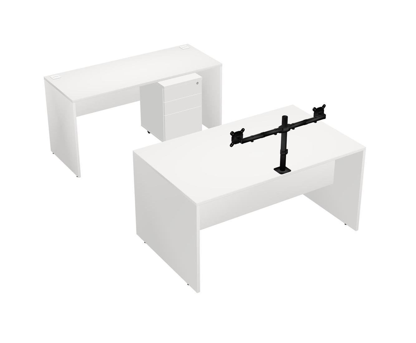 Office Parallel Desk Credenza Desk + Wooden Mobile Drawers + Monitor Arm (double Arms)