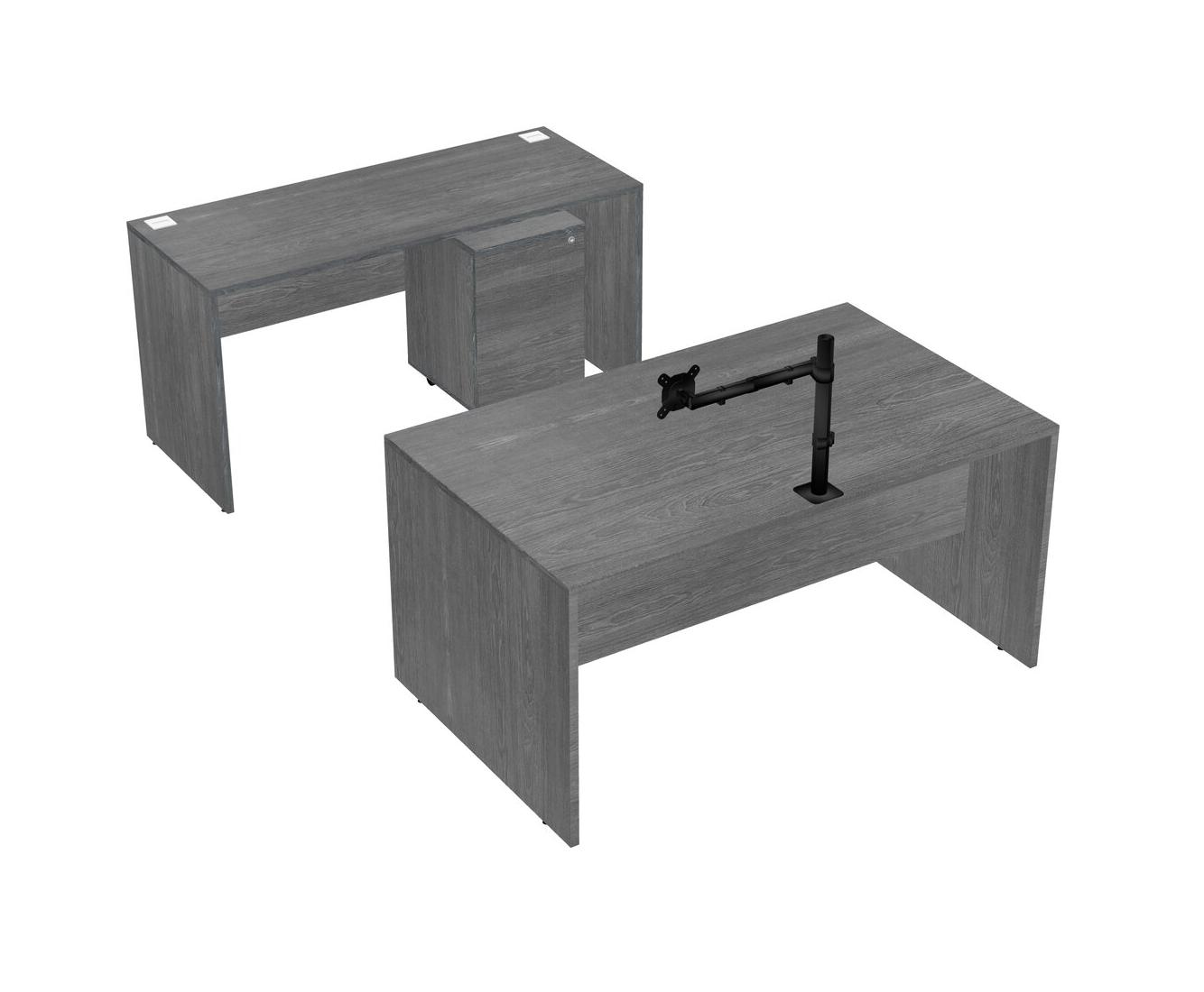 Office Parallel Desk Credenza Desk + Wooden Mobile Drawers + Monitor Arm (single Arm)
