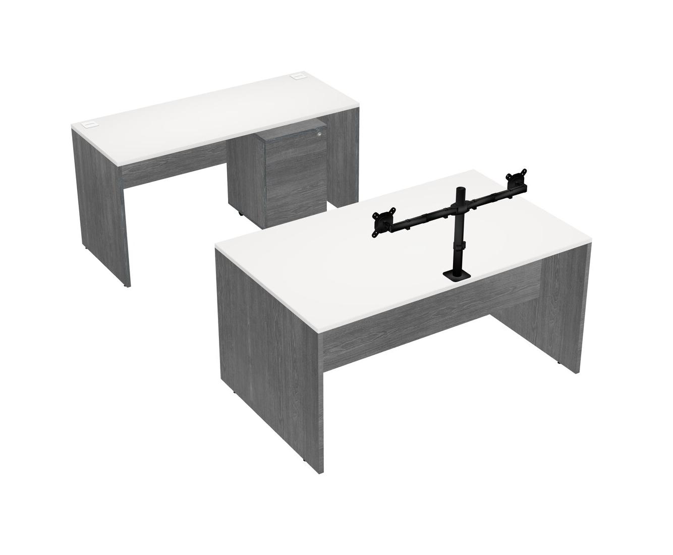 Office Parallel Desk Credenza Desk + Wooden Mobile Drawers + Monitor Arm (double Arms)