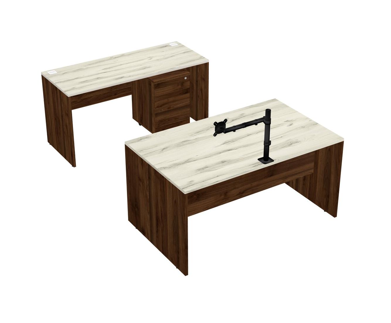 Office Parallel Desk Credenza Desk + Wooden Mobile Drawers + Monitor Arm (single Arm)