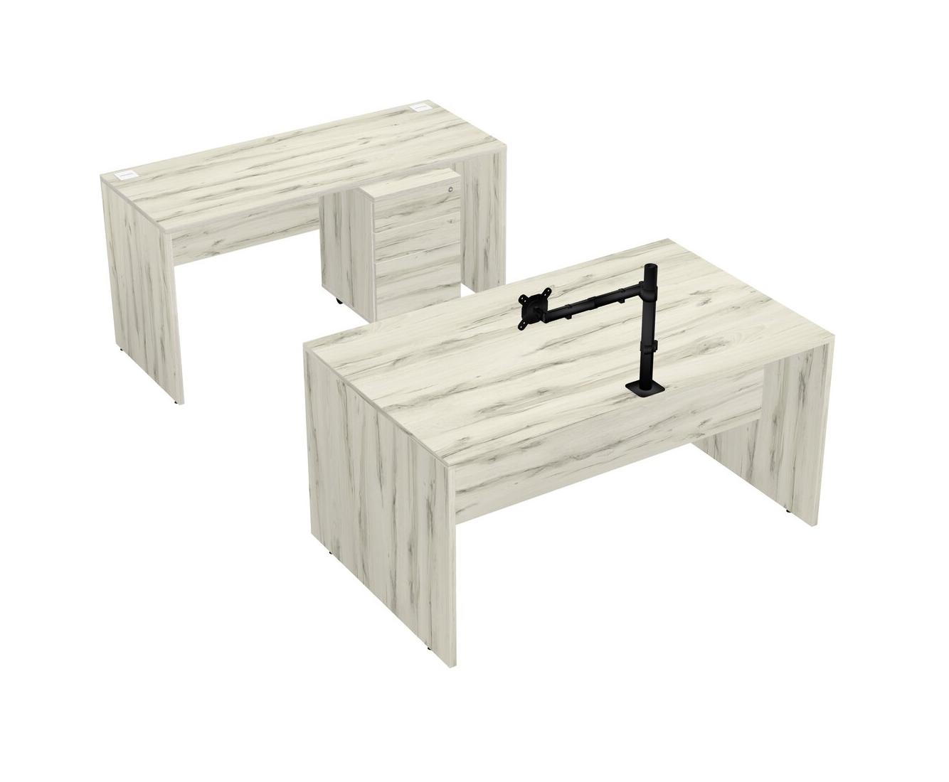 Office Parallel Desk Credenza Desk + Wooden Mobile Drawers + Monitor Arm (single Arm)