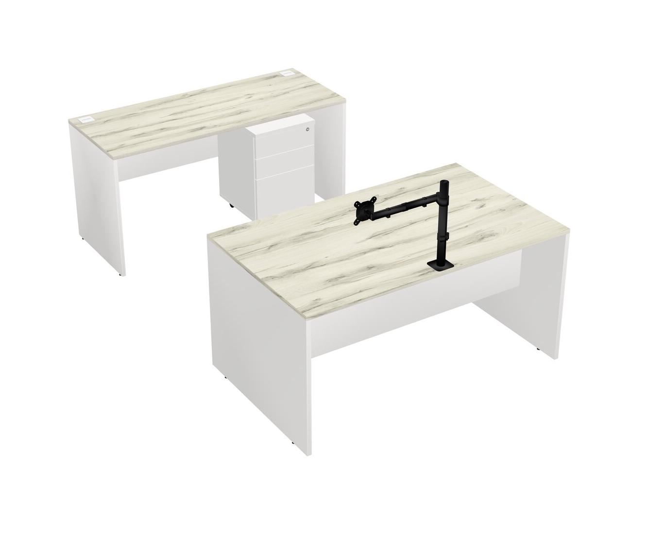 Office Parallel Desk Credenza Desk + Wooden Mobile Drawers + Monitor Arm (single Arm)