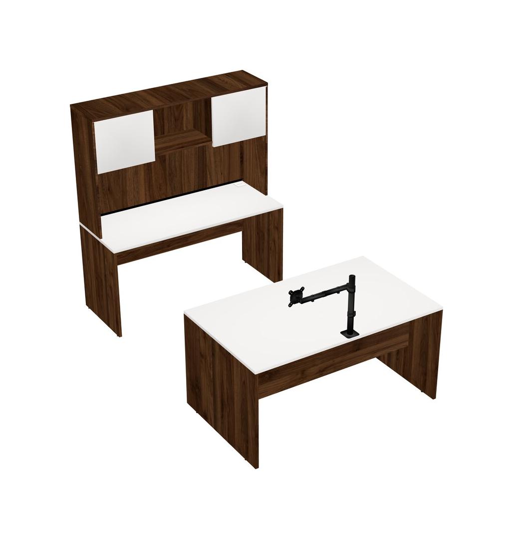 Office Parallel Desk Credenza Desk + Hutch + Monitor Arm (single Arm)