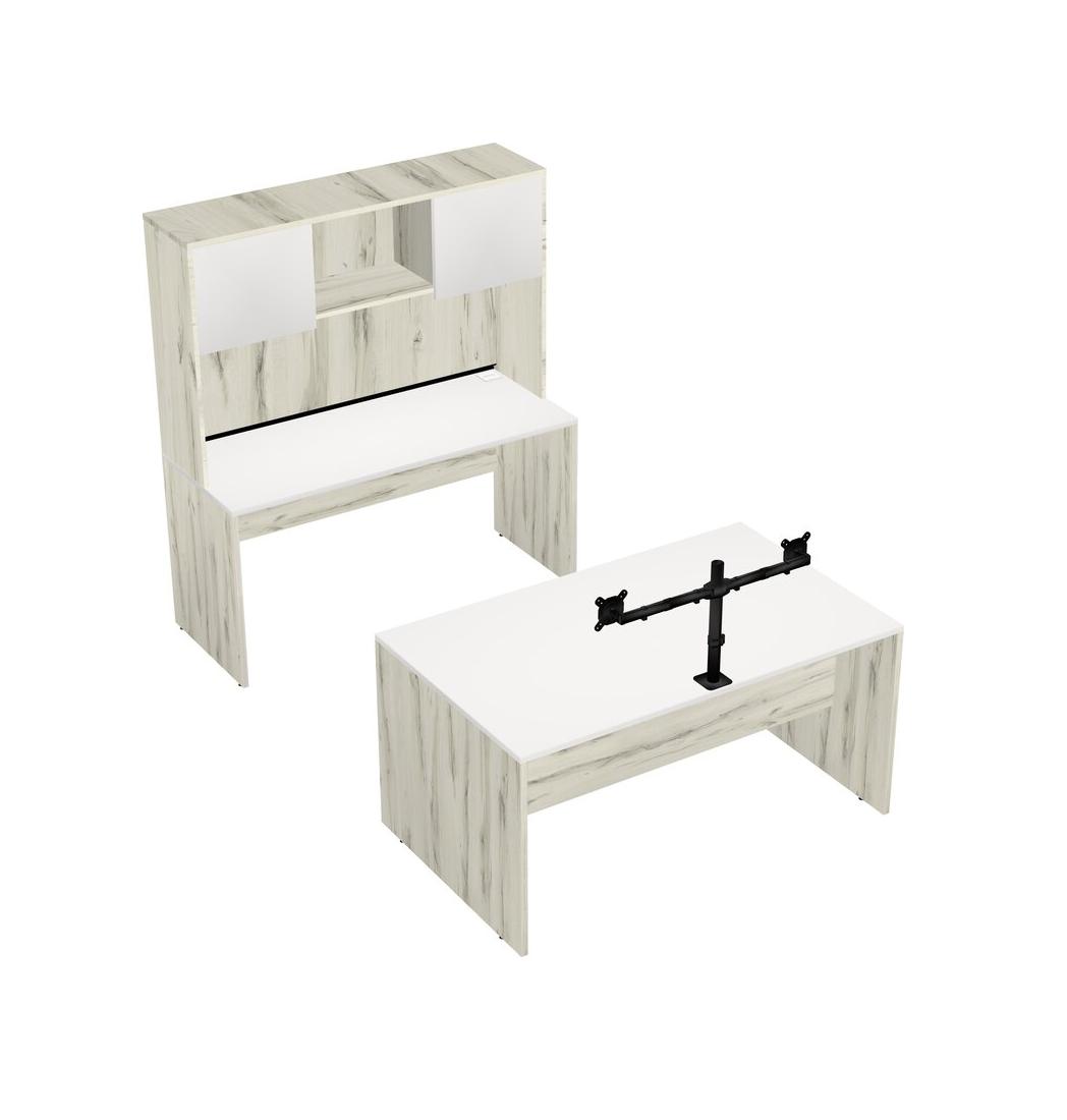 Office Parallel Desk Credenza Desk + Hutch + Monitor Arm (double Arms)