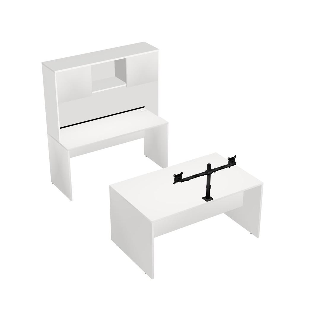 Office Parallel Desk Credenza Desk + Hutch + Monitor Arm (double Arms)