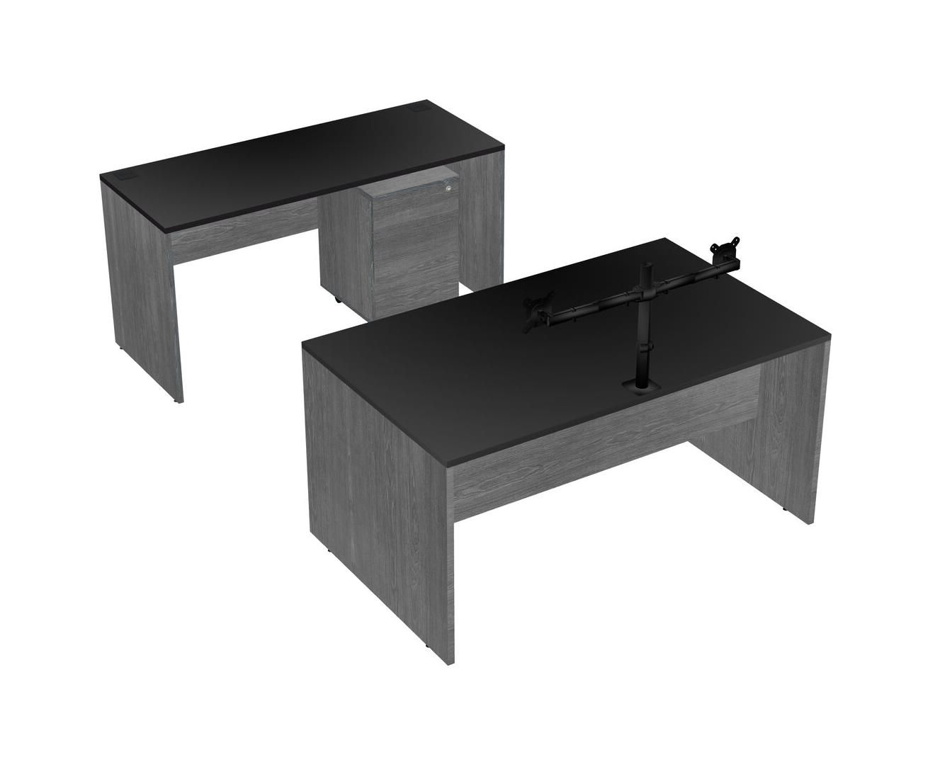 Office Parallel Desk Credenza Desk + Wooden Mobile Drawers + Monitor Arm (double Arms)