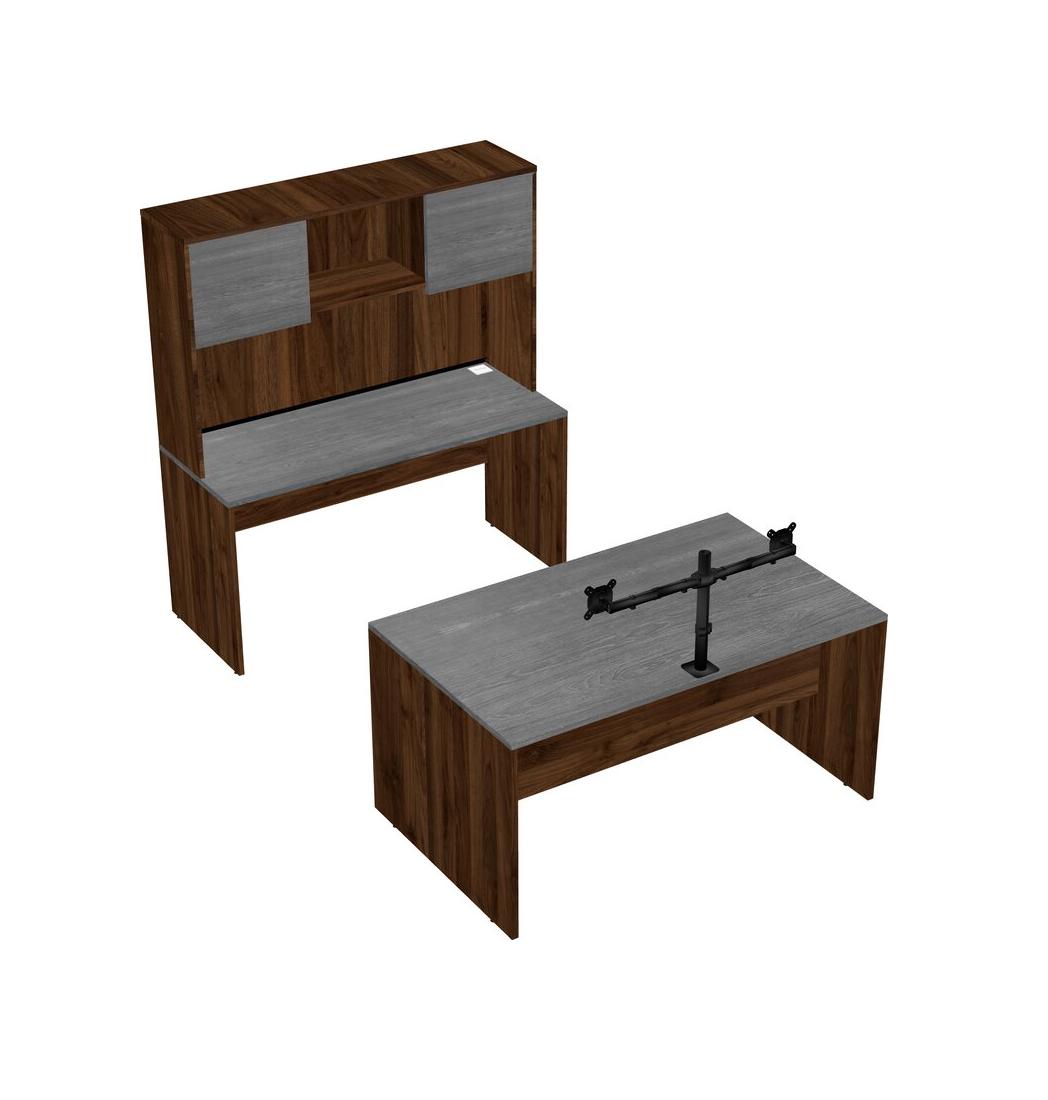 Office Parallel Desk Credenza Desk + Hutch + Monitor Arm (double Arms)